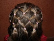 - Ponytail wreath - A rather complex, but interesting styling scheme, which always and everywhere claims to be unique. First, a longitudinal parting is made from the middle of the forehead of the back of the head, after which each of the halves is further divided in two - four parts of the hair are obtained, each of which is collected in a separate tail so as not to confuse. After that, in a similar way, four parts are turned first into eight, and then sixteen.