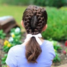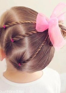 A girl is perceived as a very neat, always neat and beautiful little man, therefore she must be accustomed to the need to monitor her own hair from childhood. This is also due to the fact that for most young women, at the stage of visiting a kindergarten, their hair is quite long, but it is not always possible for a baby to be sent to an institution with loose curls.