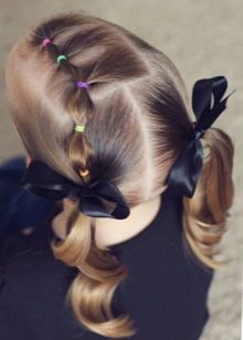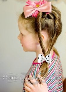 Children's hairstyles never involve pulling too tight - this is harmful for the hair, as it makes them more brittle and can begin to split. Although most recommendations suggest that you put your hair back, it is undesirable to do it every day and with noticeable stiffness - it’s better to interfere a little than to deteriorate already in childhood. Moreover, all the accessories used should be of even higher quality than for adults, because a child can break the same hairpin, and at best will go untidy all day, and in the worst, it will also pull fragments into his mouth or nose.