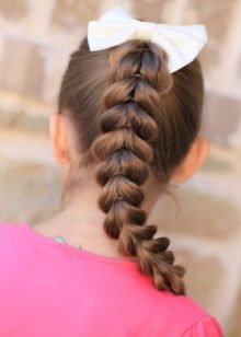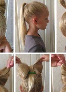 A small braid is often formed from the hanging tail, which is additionally decorated with a bow at the end, as an additional fixation, the hair at the eversion site can be fixed.