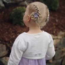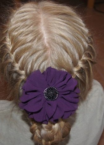 If you do not know how to weave some incredible braids, then you can braid just two ponytails. From them you can make simple French braids. Original design them with a beautiful hairpin - and your princess is ready to go out.