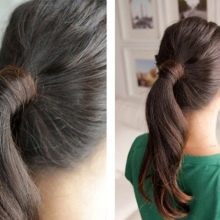 To make it beautiful and elegant ponytail, start with the formation of a pile directly from the forehead line. Following hair is divided into upper and lower parts. The upper part forms a high tail directly on the crown, and the lower part forms a low tail. If everything is done correctly, then after combing the hair and straightening the upper tail will gently cover the lower one, forming an integral hairstyle.