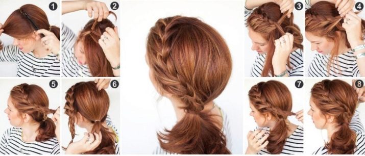 The harnesses are also intertwined and tucked to the base of the tail. The hairstyle itself is fixed with an elastic band, and the ends of the hair are hidden with the help of invisibility.