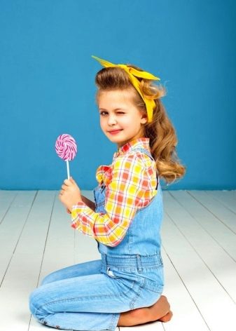 Bright and impressive clothes, large beads of all colors of the rainbow, and, of course, combed curls with ribbons in the hair are characteristic features of the image of the style. The youth of the 60s of the last century with their appearance caused envy, admiration and exciting emotions. Creative teenagers thus emphasized their individuality and significance in society. After decades, the fashion for hairstyles styg only improved. Especially great is the variety of children's hairstyles.