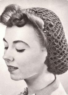The most popular hair accessory of the time was mesh. It was not necessary to purchase it, you could tie it with your own hands on knitting needles or crochet. In addition, it was possible to decorate the bag with beads or not to make any additional elements. The mesh was designed to maintain the total mass of hair and was fixed only on the crown. And the locking element was closed with a traditional roller.