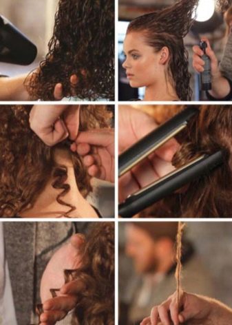- prepare the hair - wash and dry slightly, treat with thermal protection;