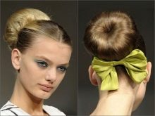 - The hairstyle with a bow from hair is very popular.