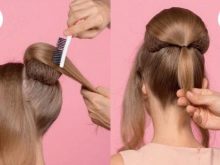 - At the very base of the tail, a donut in the form of a donut should be worn. It is important to remember that it must match the color of the girl’s hair in order to stand out slightly in the hairstyle.