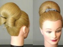 - At the first stage, you need to comb your hair and form a babette with a special bagel.