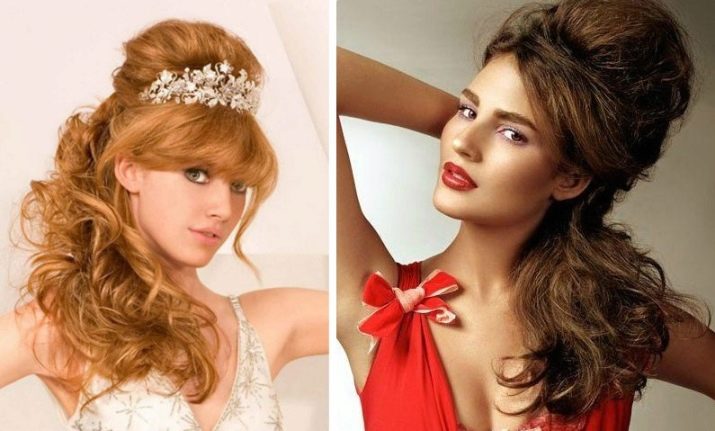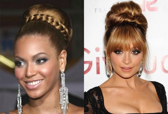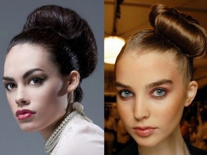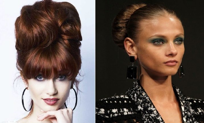 When creating such a hairstyle, wide arrows should be used in makeup, and dresses with a wide skirt should be selected from clothing.