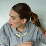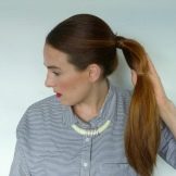 - To create this completely uncomplicated hairstyle, it is necessary to comb the hair back and collect it in a ponytail, either on the back of the head or on the top of the head, depending on personal preferences. You can fix it with an ordinary elastic for hair, but not too thick. If the hair is naughty, you can use a little mousse.