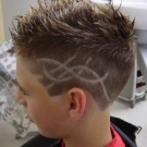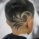 This version of the haircut is, as it were, a development of the previous topic, since they “draw” contours on the hair of a very short length. The simplest and most common options are straight and curved stripes, as well as zigzags, but in theory you can be much more original, depicting complex patterns or inscriptions on the head of hair. The latter option, however, may not be approved at school, but such a solution allows for absolute originality and recognition.