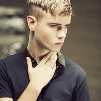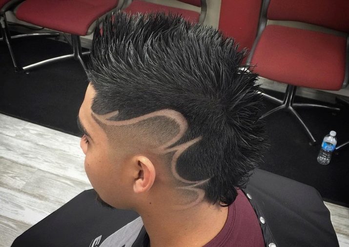 Near the forehead and on the top of the head, a part of the hair stands out. All other hair should be cut as short as possible. The hairstyle helps create a hooligan, rebellious look.