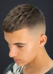 - British - It is considered a favorite among men's haircuts, as it is suitable for any age. Her characteristic feature is long hair from forehead to crown. Moreover, the bangs can be even longer. This is done so that it can be combed in the form of an elegant wave. All other hair is cut much shorter.In the classic version of the British parting is still present. If the boy likes the British, but the hair is not long enough, you can choose another variety - Canada. Although there is quite a bit of debate about which of these two hairstyles is the original. In Canada, the hair on the side and on the back of the head may be practically absent. Due to this, contrast is achieved.