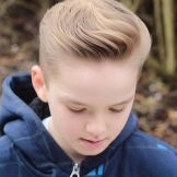The most popular among adolescents from 9 to 12 years old were haircuts with a side parting. Performing this hairstyle does not take much time, it is convenient to go with her both to classroom activities and in everyday life. Laying without additional efforts and special tools. You can always lay the bangs so that it does not interfere with the child and makes him irresistible. Light chaos will emphasize the individuality of the boy.