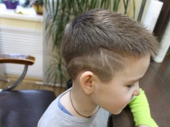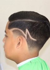 The basis is taken Undercut haircut with shaved temples and a nape, where all kinds of drawings are located. It can be simple broken lines, stars, cobwebs, logos of famous brands, emblems of automobile brands, just words or names. It all depends on the nature of the child and brand areas.