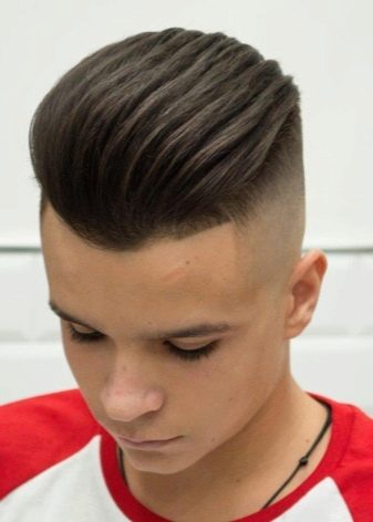 Haircut Pompadour waves suitable for a boy from 12 years and older. Here you can diversify the hairstyle with hair length at the temples and the back of the head. Completely shaved hair in these areas is suitable for older boys. The dominant principle remains unchanged - bangs up.