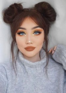 A wig is a trendy hairstyle, it has not gone out of fashion for so many years. Nowadays, such styling is famous for the fact that it is done very easily and quickly. Moreover, there are many variations of the beam. Ladies have the opportunity to choose the best option for any occasion. It can be either a daily exit to the city, a trip to work or even a solemn event. However, there are such types of this hairstyle that emphasize the insolence, courage and cheerfulness of the lady - these are two charming bagels located along the edges of the head.