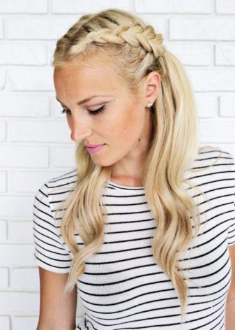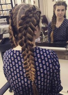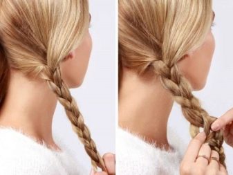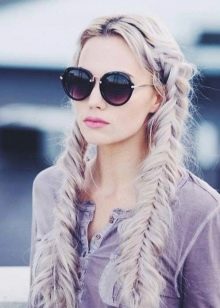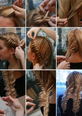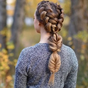 Also, all of the listed types of weaving can be combined with each other. For example, the hairstyle option looks interesting when the usual French weaving is used first, and then it goes into a “fish tail” or the opposite version.
