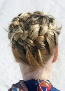 - the basket in its finished form looks like a wide strip of hair twisted together among themselves over the entire head.