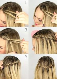 - continue in the same way, moving towards the middle (it turns out that the upper curls were braided with the capture of new ones, and the lower ones remained untouched - a look reminiscent of how a waterfall flows);