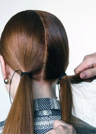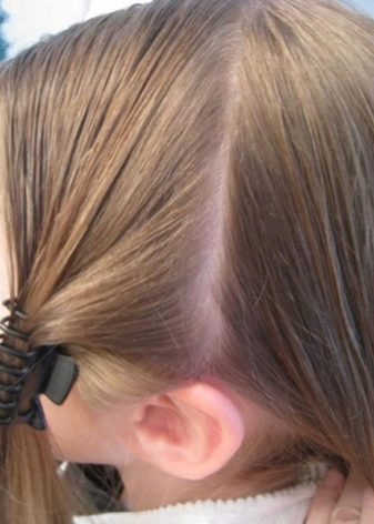 - moisturize your hair with a special tool, comb well, divide into two parts;