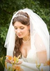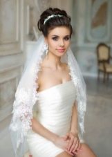 A beautiful veil is that element that goes well with both long and short hair, with pigtails and buns. However, you need to try so that the hairpins and hairpins are not noticeable, unless they play the role of additional decoration.