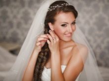 - attach a veil to the top of the braid with a comb or several spiral pins that will hold it more securely, but it can also be a hairpin, diadem or rim to which you can sew the material.