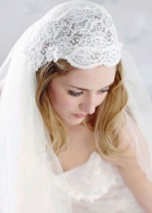 - A fashionable option for using a wedding attribute is “Juliet's hat”, when the veil wraps around the head and gathers in a knot at the back - it can be fixed with an elastic band, a hair clip with flowers or a beautiful ornament.