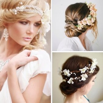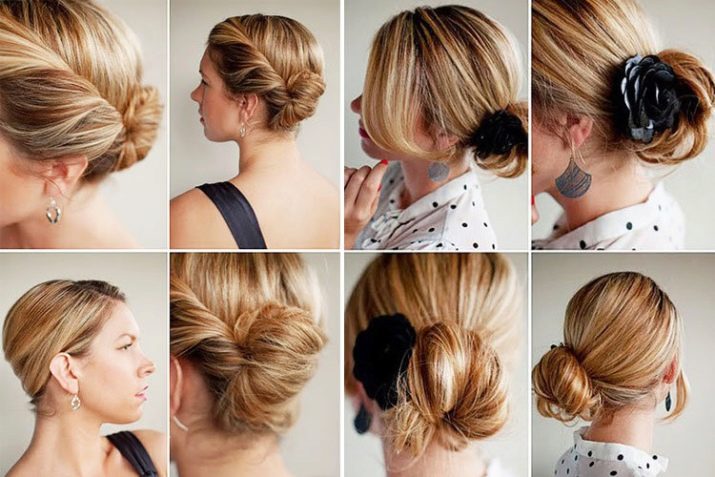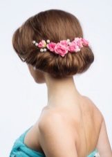 Important! If you decide to dilute the hairstyle with a flower, then remember the following: for thin hair, use one small artificial flower, for thick hair - several medium-sized bottles.