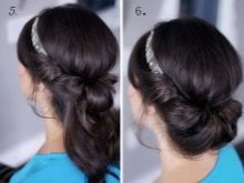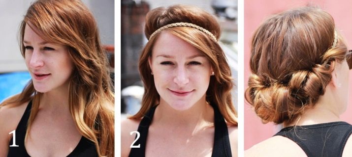No curling is required for this hairstyle. It can be done in 5-10 minutes. All that is required is an elastic bezel and varnish for fixing. Studs may be required if necessary. A step-by-step instruction is as follows: