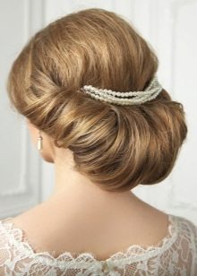 Let us also pay attention to the corymbos, a variation of the Greek knot. Such a hairstyle differs from the Greek tail in that the braid has a different location and lies as if on the base of the neck, making the hairstyle more feminine, with one braid being used. You will need a small elastic band and a bagel for the beam. A step-by-step instruction is presented by the following actions: