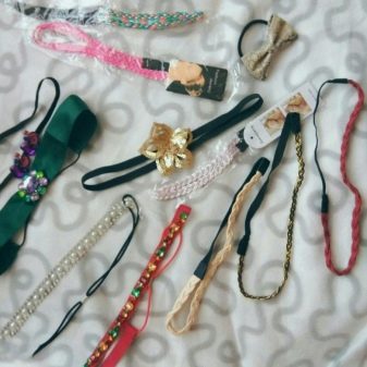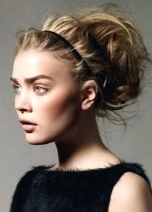 - If your hairstyle consists of a ribbon or rim, then pay attention to the color of the decoration. A catchy rim will not work, just like a ribbon. Choose calmer shades that suit your eyes and hair color. A black bezel for dark hair and pale shades for blond hair will always be a winner.