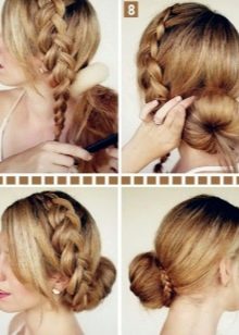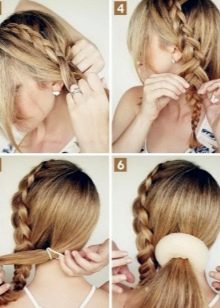 - Wind the braid into the base of the gum like a rose; if necessary, fix the result with invisibility;