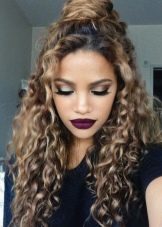 - carving gives great scope for modeling a wide variety of styling, therefore, after cleansing the head, the owner of long curled hair can create quite interesting hairstyles in different styles;