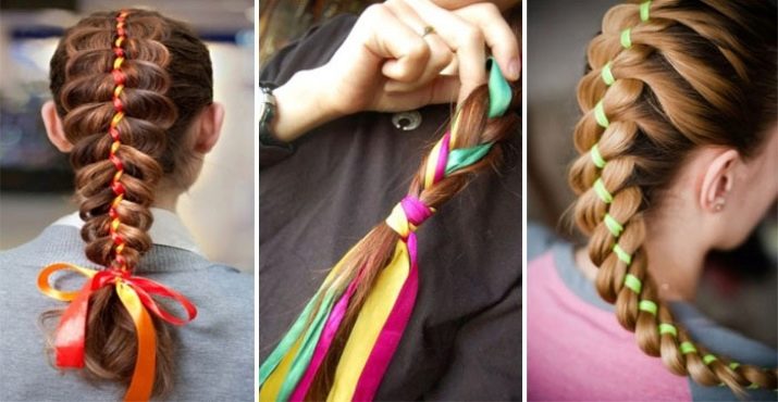 You can braid your hair in a different way, leaving the middle strand motionless. You can twist it with a tourniquet, piercing with colored ribbons and tows for the greatest effect.