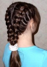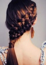 - Fasten both braids to the tail. You can not do this by continuing to weave ordinary braids, if the length of the hair allows, or to weave them together. You can wrap the remaining hair inside - this is a more evening and sophisticated option.