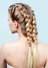 Pigtails should be the same - divide the entire mass of hair into strands of equal thickness. In order for the hands to remember how thick to take the strand, it is better to first work on someone. Hard hair needs special products such as mousse, foam.