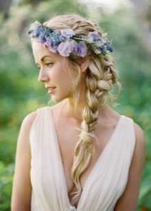 Scythe-dragon got its name for a look similar to the structure of the dragon. Her alternative way of weaving is spikelet (french option) The hairstyle of the dragon is quite young, but nowadays it is actively starting to acquire relevance. A braid around the head looks very feminine, and 2 braids decorated with flowers or hairpins on the sides are no less beautiful and charming.