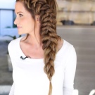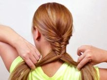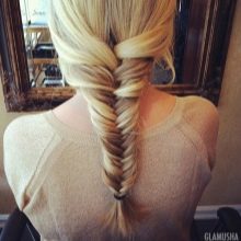Another simple pattern for braiding is a fish tail. This option looks most impressive on long hair and medium length hair.