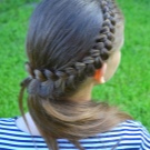 - The interweaving of the side strands should continue until the pigtail reaches the base of the neck, by this time all the basal hair should be in the hairstyle. After that, continue to weave it like an ordinary three-strand pigtail.