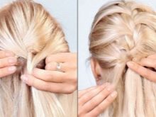 - Select one part of the hair from the crown and divide into three approximately equal parts. Braid the base with an elastic band to simplify your further actions. When you gain the necessary experience, you can no longer use additional binding. Now start weaving this selected strand as an ordinary braid, but the strands added to the side should overlap under the central part, and not on it. After that, start adding new strands from the remaining hair that was not involved in creating the main braid. Try to add new strands of approximately the same volume, so the hairstyle will be more accurate.