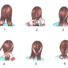 - Sprinkle hair with plain water or a special product so that it becomes slightly damp. Comb your hair and fold the whole mop onto your back. Divide the hair into three equal strands.