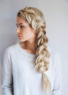 This light type of braid is suitable for owners of thin hair, as it will add much more volume to the hairstyle. And this hairstyle looks spectacular. The only difficulty is that you will have to work out the weaving pattern very well - due to the large number of strands involved in creating the braid, it is very easy to get confused.