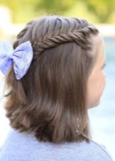Braids on short hair have one form or another, depending on how short the hairstyles of girls are. You can braid small pigtails, and you can more voluminous, if the length of the hair allows.