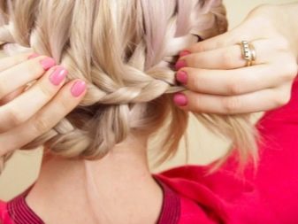 In this way, weaving is brought to the right place. The ends of the hair are fixed with an elastic band and hidden under the remaining ones or form a shape resembling a flower from them, stabbed with hairpins or other fixatives, depending on the characteristics of the haircut and hair.