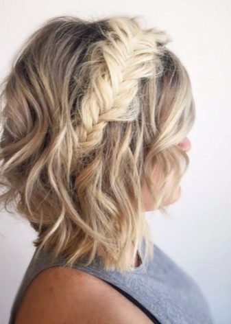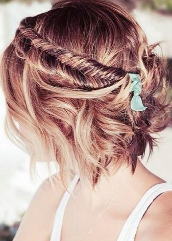 Even if the hair barely overcomes a length of 10 centimeters in height, they can be used to make original evening hairstyles with a fishtail weave. The braid can be positioned as you like: