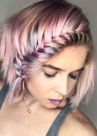 Asymmetric short haircuts allow you to make a braid on only one side of the head, hairstyles like a short square make it possible to make two braids or more.