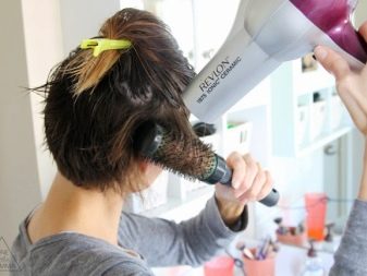 - When styling short hair is done with curlers, the first must be wet. In addition, natural drying takes a long time. Therefore, they must be wound either at night, or use a hairdryer.