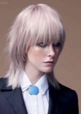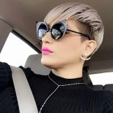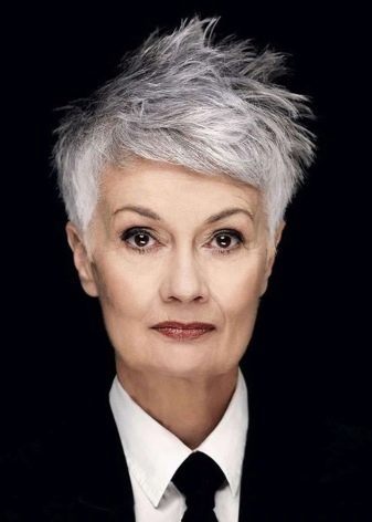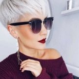 You can’t call this young woman that does not prevent her from following at least two criteria of a fashionable modern hairstyle - she has a short haircut and so pronounced negligence (albeit done) that many youth would be envious. As a result, the hair is an ashen-gray shade that usually ages people, in her case provide a rejuvenating visual effect. Despite some insolence in appearance, the image is still combined with a business suit and tie.